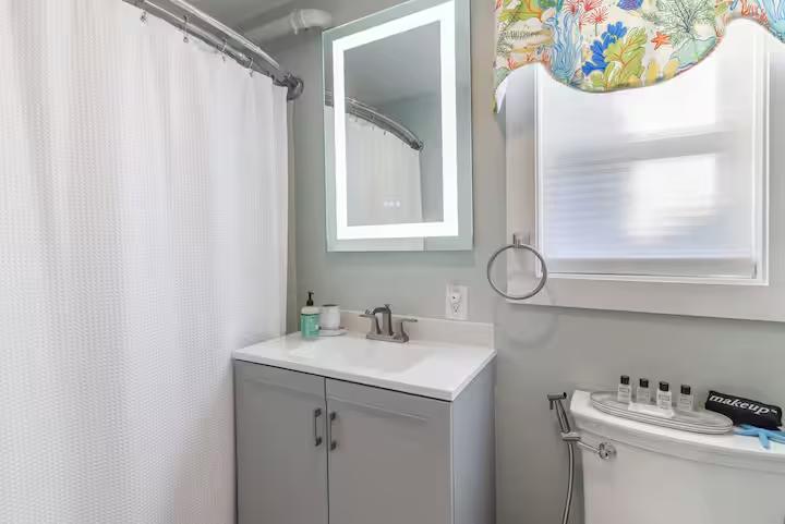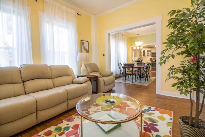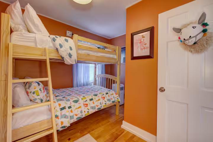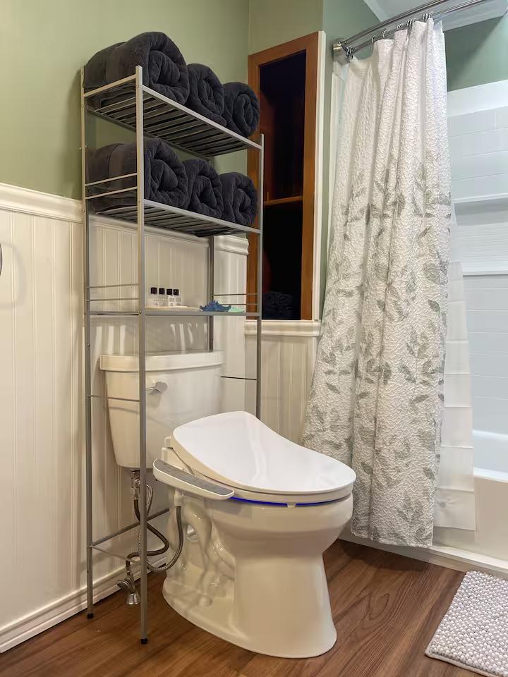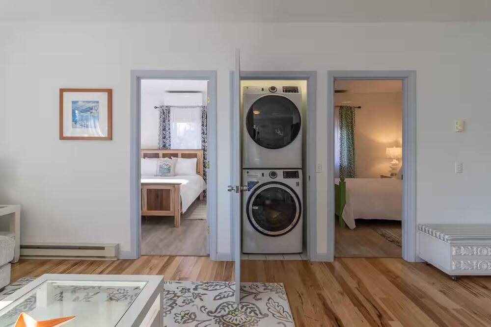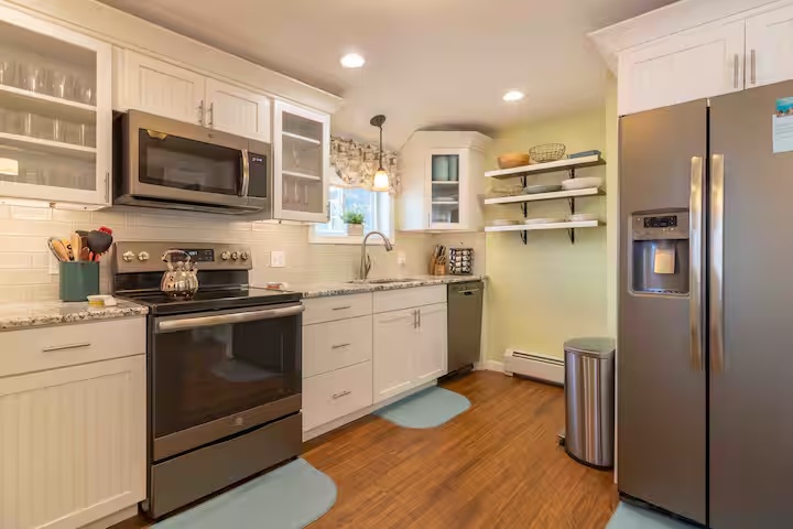 The main floor (level with the parking area) features the living room with comfortable oversized 2 leather loveseats and 1 sofa. Sit back and enjoy our 75 inch smart TV. Dine and enjoy the Harbor view through the wide picture window . Breakfast nook has seating for 3 and the dining table with seating for 5. The kitchen has full size appliances: fridge, stove top oven, dishwasher, counter top microwave, toaster, coffee maker, and blender.