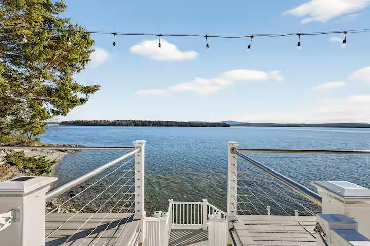 This is a 3 level house with 3 bedrooms and 4 full bathrooms. Each bedroom has its own en-suite bath. The fourth full bathroom is located on the main level. There are two master bedrooms located respectively on the upper and lower levels of the house. Each with king size beds. The second bedroom in the upper level has two queen beds. This waterfront vacation home offers unforgettable views of Somes Harbor with its backdrop mountains of Acadia National Park. The backyard also features a private wharf with gangway to the floating dock.